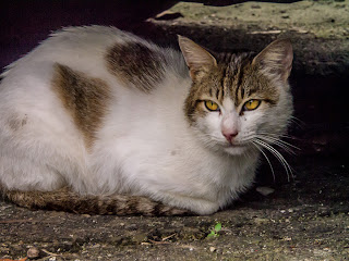 這個是上次從雙溪回來的路上拍的, 本來看到台灣藍鵲, 停下來想拍幾張, 不過馬上就飛走了, 不過就在旁邊農家發現了為數不少的貓咪, ..... 其中就這隻最大方給拍, 有著厚厚眼線的貓咪~~~呵呵~~ 拍了一下一個歐巴桑走出來跟我聊天, 她說這裡的貓都是被人野放的, 她就加減餵他們, 所以也就一個菜園有十幾隻貓的情況出現~~~不過因為馬上就飄雨了, 其實還蠻陰暗的, 照片也就有點糊, 有點可惜....