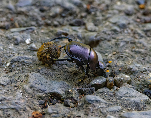 屁話說完, 這個是在新竹山區拍到的臺灣側裸蜣螂, 又叫臺灣推糞金龜, 也是台灣特有種的昆蟲喔~~成蟲以動物糞便為食,常見在空曠的環境看到糞金龜用後腳推糞成球狀,到隱密的環境埋在土裡產卵,繁殖下一代,幼蟲以糞球為食。糞球有2種,一是實用性糞球,其次是育幼用糞球,後者的糞球通常由雄蟲推到雌蟲旁,然後雌雄合力推糞球,過程中進行交尾,然後將糞球埋進5-10公分地下為巢,產卵。(介紹資訊來自驚奇山行網站)