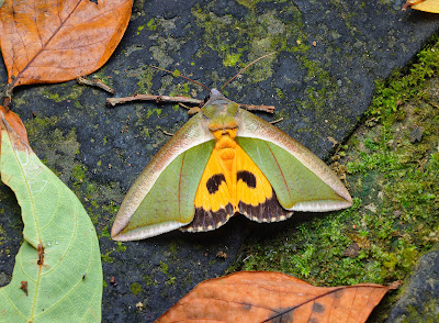 夜拍閒晃的時候看到這個很有趣的豔葉夜蛾, 牠的翅膀完全擬態捲曲的樹葉, 尤其是翅膀的下緣還有陰影的假3D效果, 合翅停棲的時候非常融入環境, 就像一片有點乾掉的葉子~~翅膀全張的時候可以看到下翅橘黃色的警戒色和眼斑, 拍的時候一直從我的頭燈飛撲而來, 顯示是有趨光性的一隻蛾~~~~